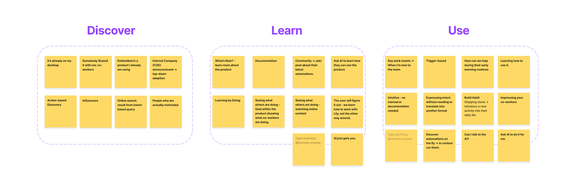 During the design sprint we set up a virtual affinity diagram and then sorted ideas into meaningful categories.